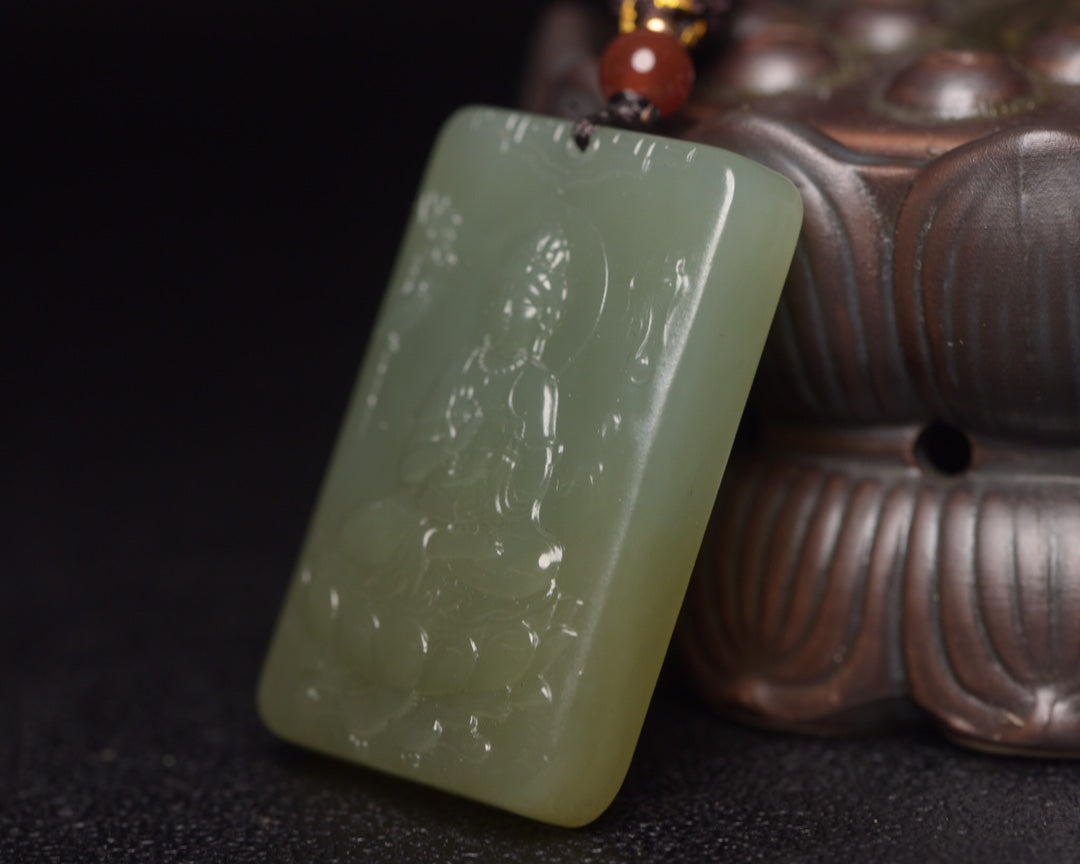 A0224 Chinese Natural Hetian Jade Carved Kwan-yin Pendant
