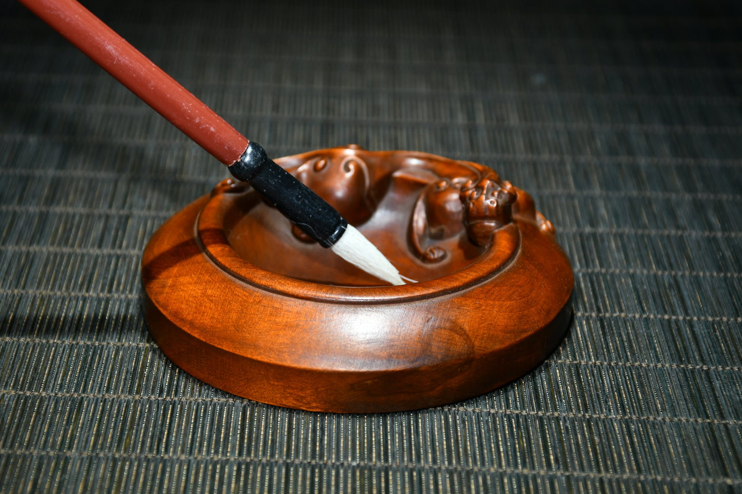 A0361 Chinese Boxwood Wood Carved Chi Dragon Brush Washer