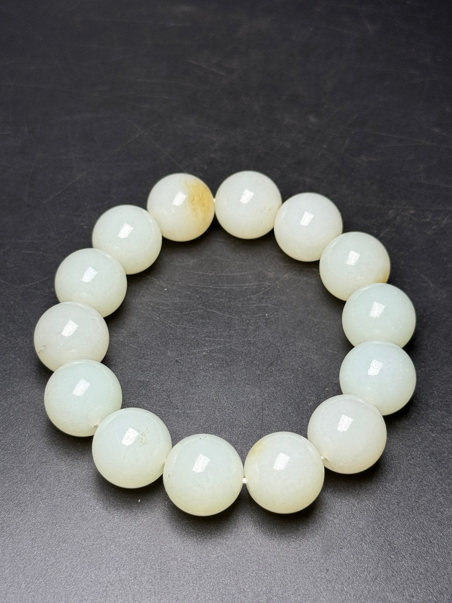 A0557 16mm Superb Chinese Natural Hetian Jade Beads Bracelet
