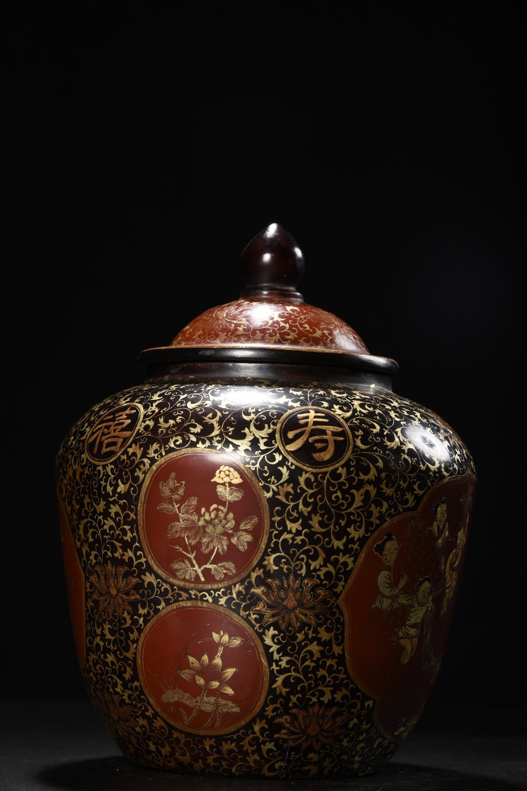 A1234 Chinese Gilt Gold Lacquerware Urchin Design Pot