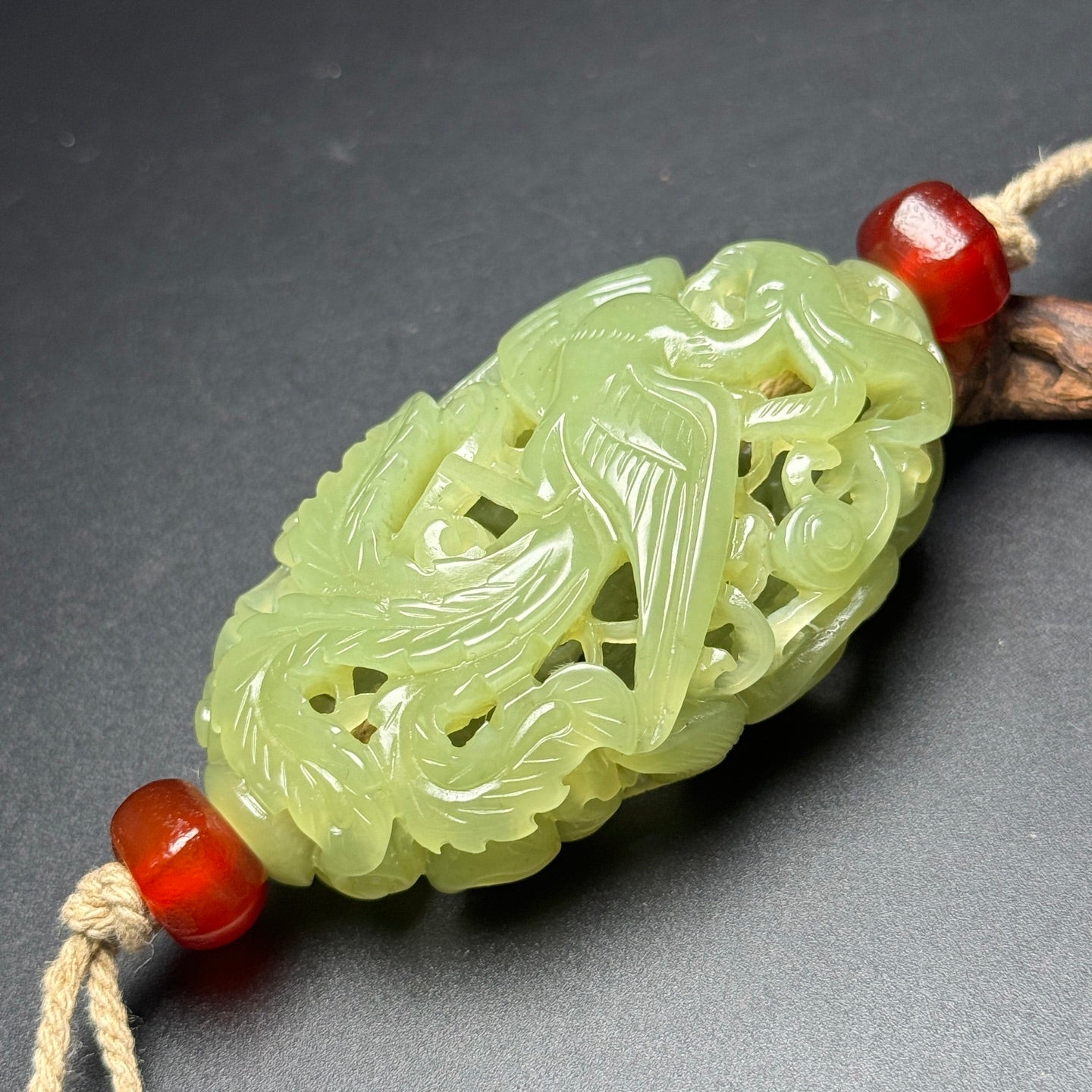 A1235 Openwork Chinese Hetian Jade Carved Fortune Dragon Sachet Pendant