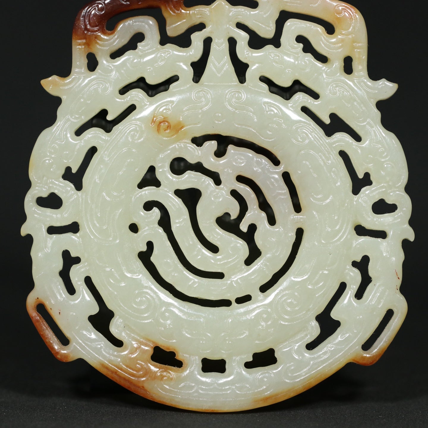 A1943 Openwork Chinese Hetian Jade Carved Dragon Phoenix Pendant