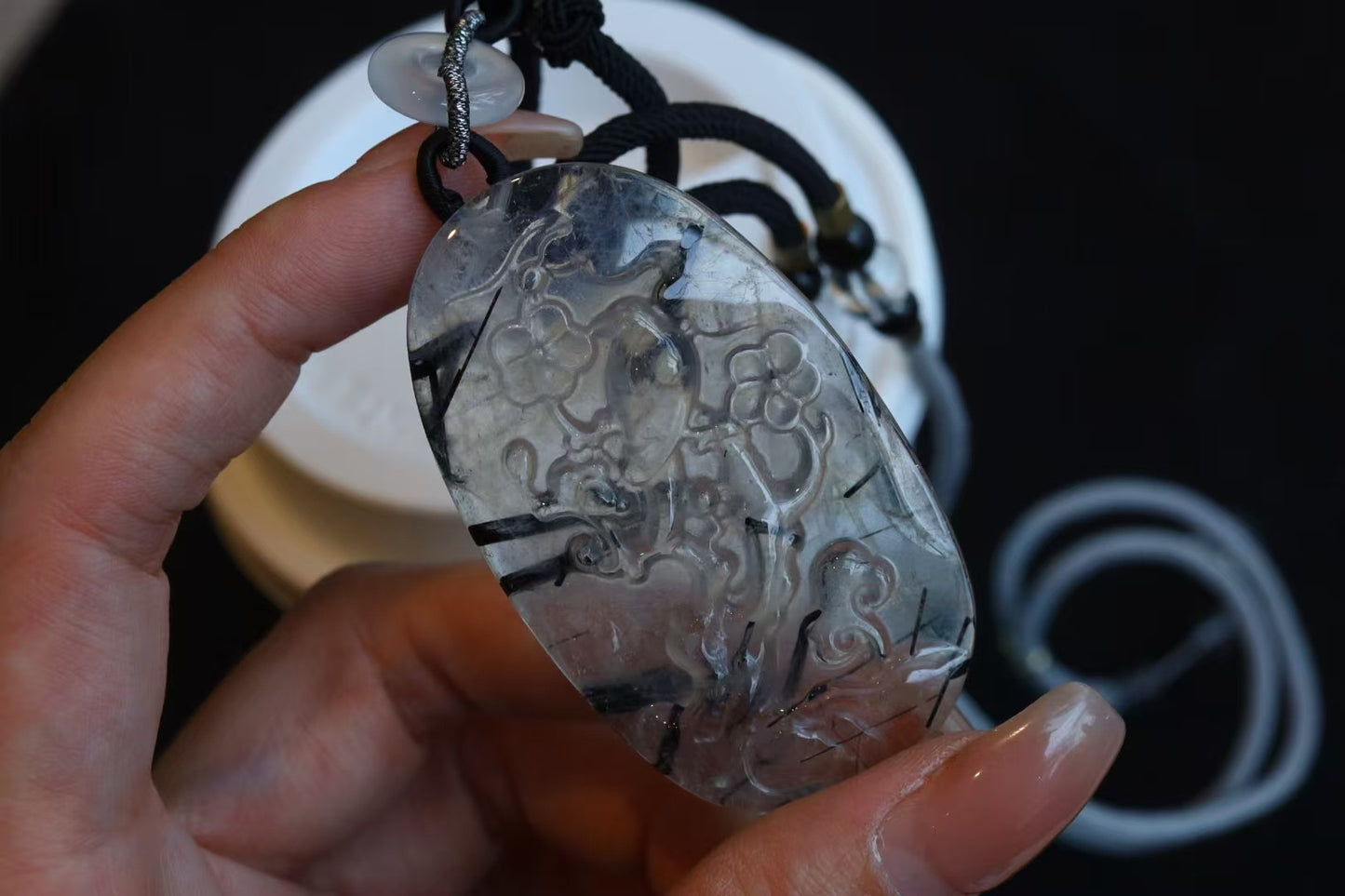 A2316 Beautiful Crystal Low Relief Plum Flower & Magpie Pendant