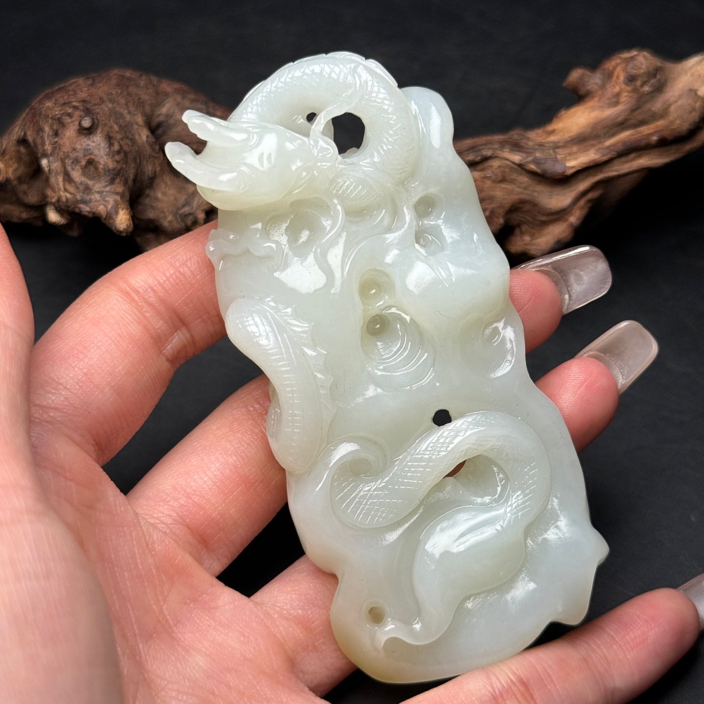 A2337 Superb Chinese Hetian Jade Carved Fortune Dragon Pendant