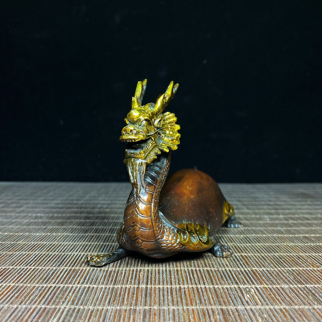 Chinese Gilt Gold Bronze Dragon Turtle Statue