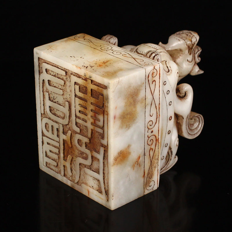 Superb Vintage Chinese Hetian Jade Divine Beast Seal