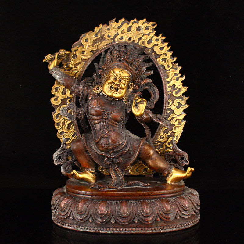 Vintage Tibetan Buddhism Gilt Gold Red Copper Mahakala Statue